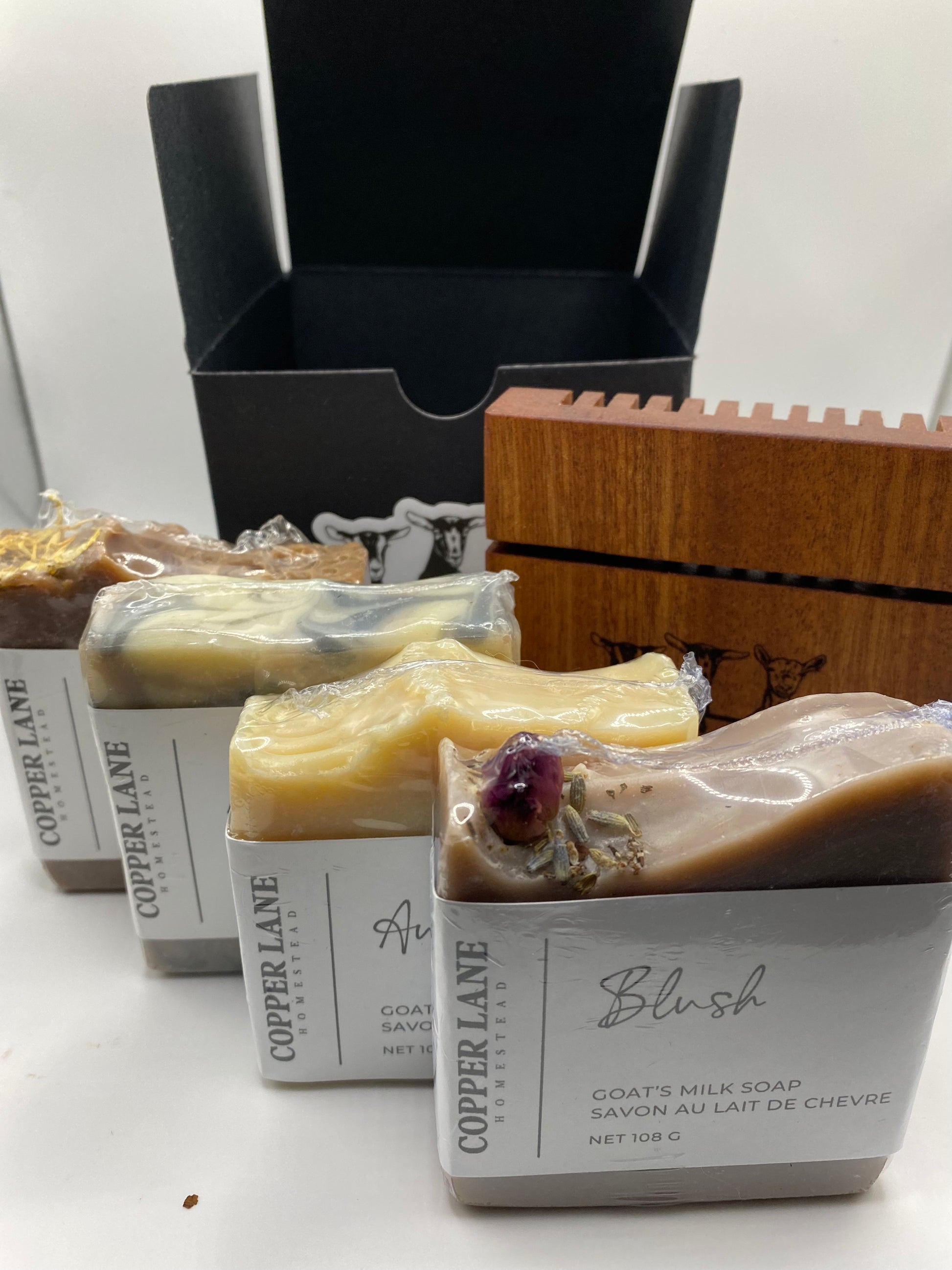 Our 4 classic styles and 1 sapele soap dish carefully packaged in a gift box ready to give to that special someone.
